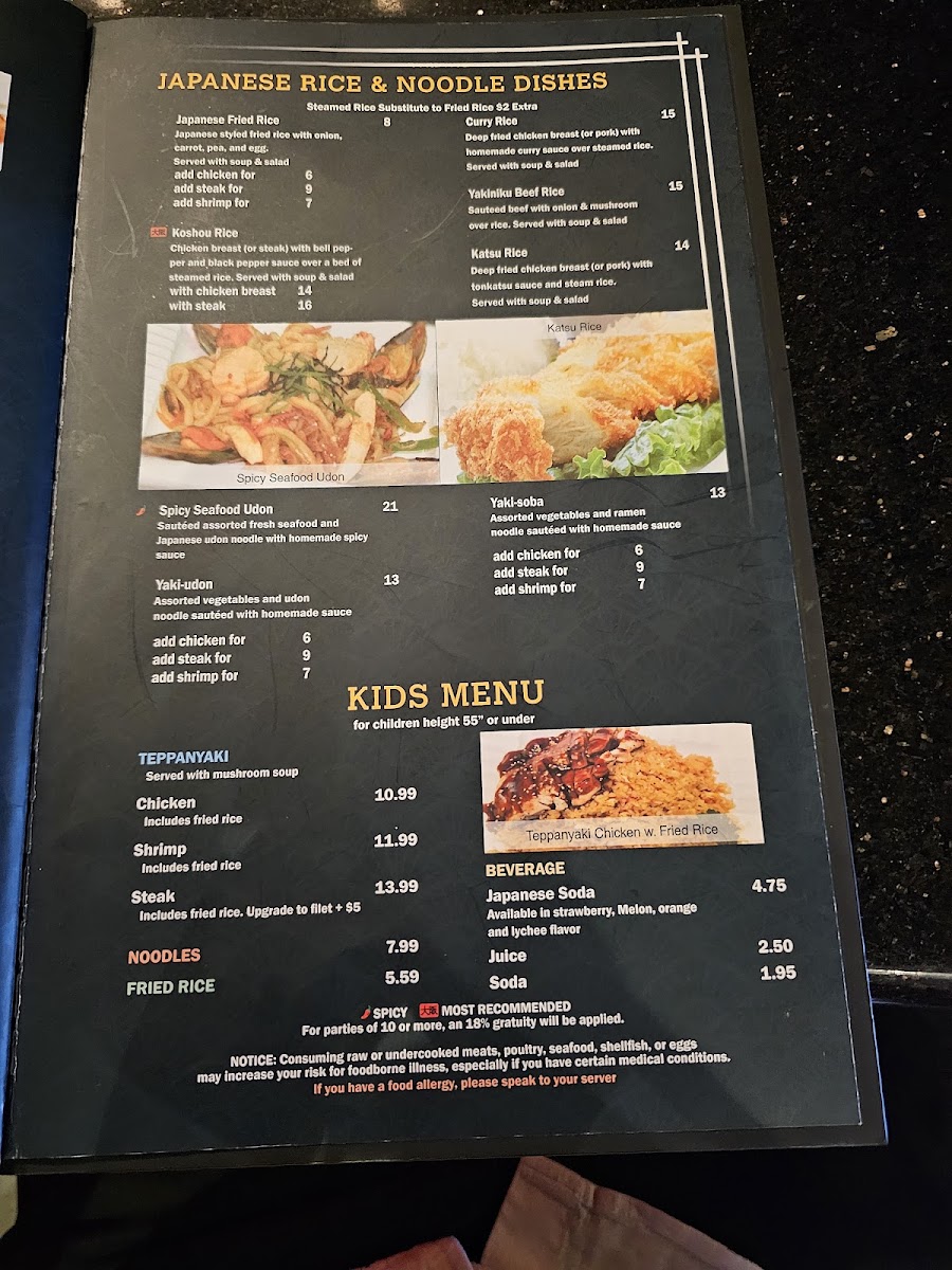 I wish I had come here sooner! This restaurant exceeded all of my expectations. We arrived and were seated immediately, served drinks immediately, and then after we ordered our salads and soups came immediately! We got the teppanyaki meals because we wanted to watch it cook in front of us, and the cook was phenomenal! He cracked jokes, showed off, and gave us a wonderful time, all while cooking our food absolutely perfectly!! My husband’s steak was perfect, and my salmon had a crispy crust and juicy center. The fried rice was flavorful and not dried out. And the prices just were a cherry on top, for having a complete, all-included appetizers, dinner, and a show, I am thoroughly impressed. All the food was made quality and in plentiful amounts! We had many leftovers. If you are debating coming here, you will be pleased beyond all imagining.